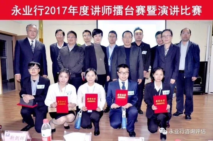 2017年10月16日下午,永业行在总部举行了2017年度讲师擂台赛暨演讲比赛,来自总部事业部及分部的9名参赛选手,结合公司业务发展和各自专业领域,以真实的案例、饱满的热情、生动的语言,畅谈了各自对公司及行业发展的深度思考。 恩施分部的黄丽群从企业与员工之间的关系出发,深入浅出地阐述了企业与员工共同成长,创造光明未来;投资咨询事业部的赵咪、房地产事业部的任文强、环境事业部的刘兵分别结合工程造价、房地产评估报告、环境新业务的发展等内容进行了精彩分享;地产顾问事业部的刘超围绕自己多年的