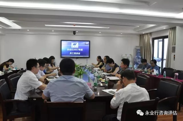 2017年7月21日上午,永业行2017年度员工恳谈会在总部召开。董事长方国成、总裁潘世炳、副总裁靳剑辉、副总裁王琴、助理总裁雷小军、咨询业务副总监文云波、国土业务副总监吴学锋、运营副总监肖莉、各服务部门负责人和来自23个部门的共31名员工代表参加了恳谈会。